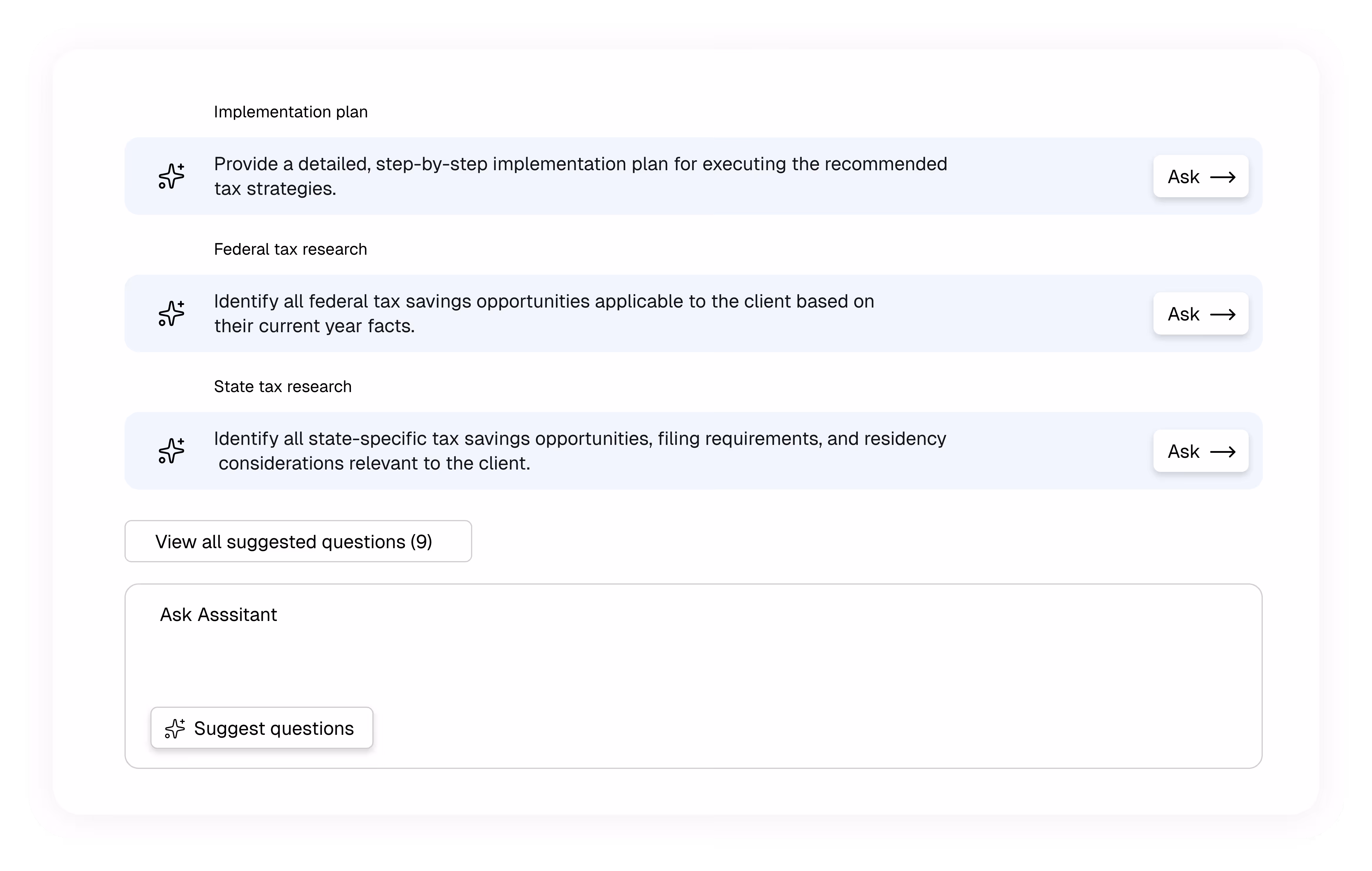 Advisor starts from the tax return, not a blank chat box. It uses verified income, carryovers, multi-state exposure, rentals, and entity structure to build strategies you can stand behind.