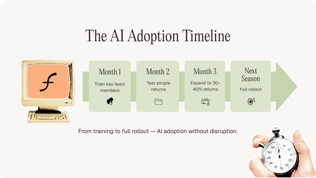 Roll out in phases. Start with simple returns. Expand as confidence grows.