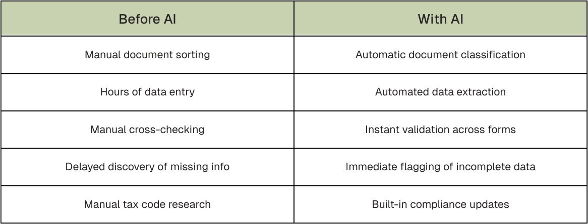 That’s the state of AI in 2025: not futuristic, not experimental, just the practical way to survive and scale tax season.